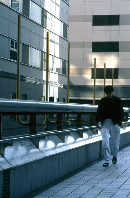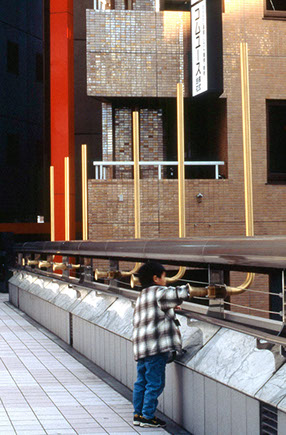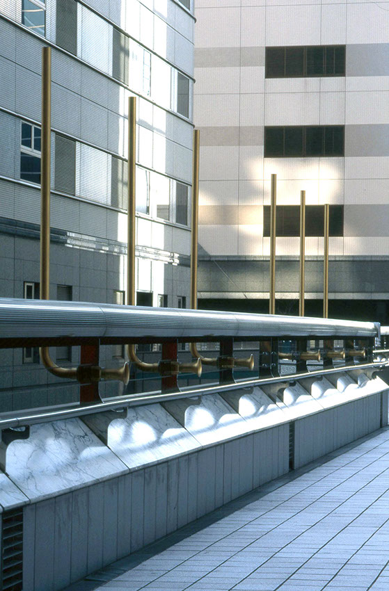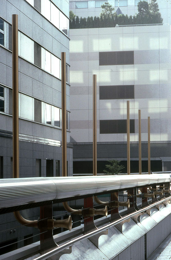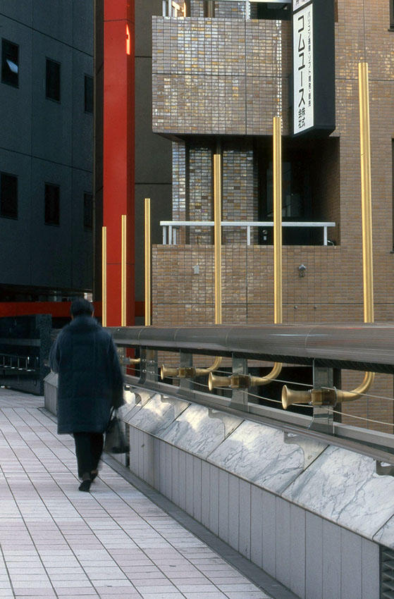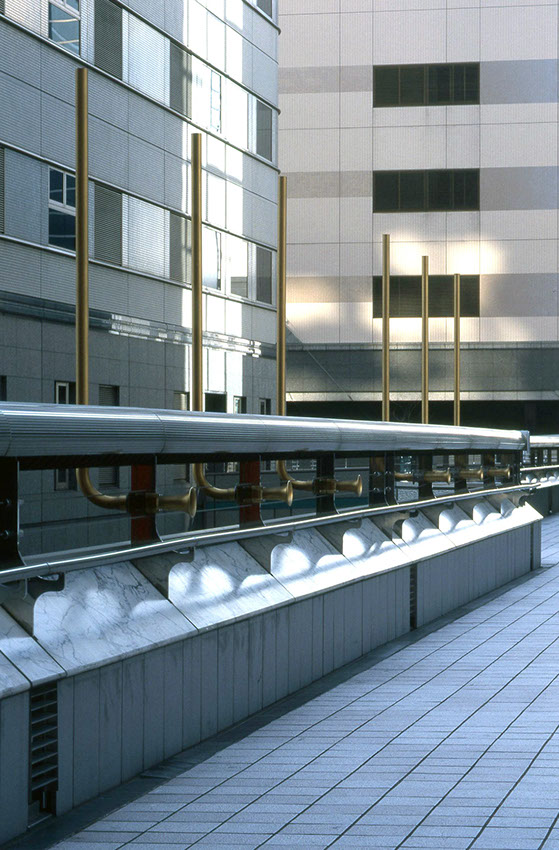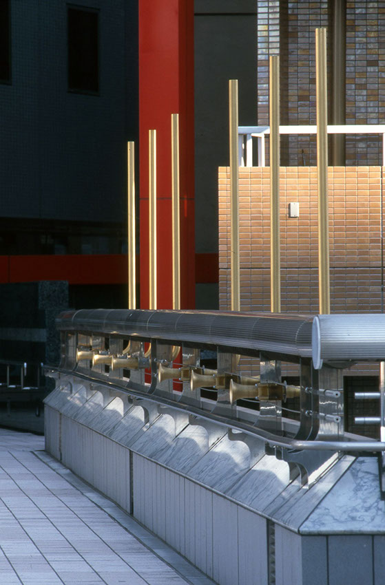 再開発により1994年に誕生した「ファーレ立川」は、新たな街のあり方を予感された街区、インターネットに代表される情報革命が起こりつつあることを感じた。私が、街区の開発プランをみたときの印象であるが、この場所にあえて肉声によるコミュニケーションの為の道具を風景の中に忍ばせておきたいと思った。
