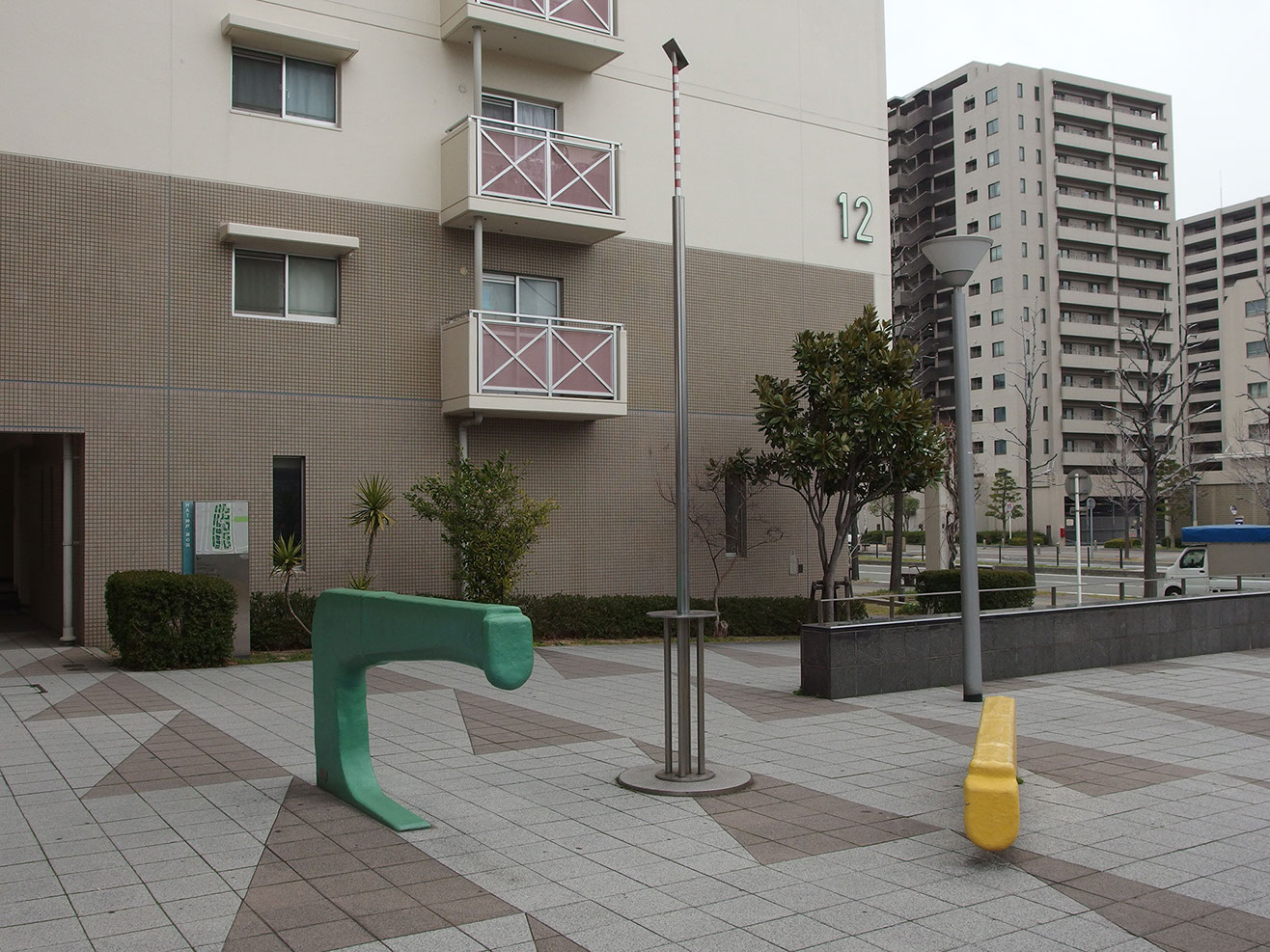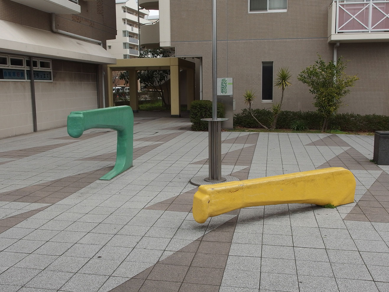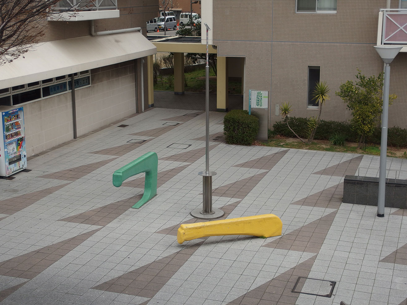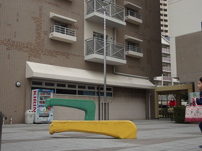 作品の設置してあるところは、区画のすみの小広場といった場所なので、ちょっと腰掛けて休んだり、待合せをしたりというふうに使ってもらえればと思う。そして、この作品の成立ちから広く大きな宇宙へと思いを巡らすことのきっかけを人々に提供できればと願う。