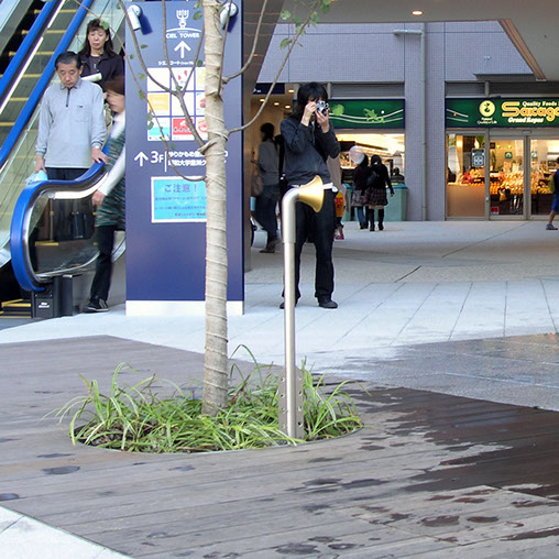 豊洲駅前の交差点に位置する高層住宅、低層部に商業施設を含むビル前の小広場に伝声管を設置した。ここでの伝声管は、2人掛けのベンチの両端に開口した物と、一対で10mほどの距離を隔てた物の2系統。実際に会話が出来る遊具的な物だ。