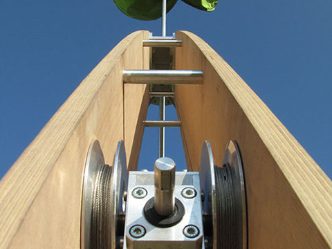 大きさは、木製の三脚部分で高さ5m、帆の最頂部で7.3m、設置面は、1辺が4mの正三角形になっています。
