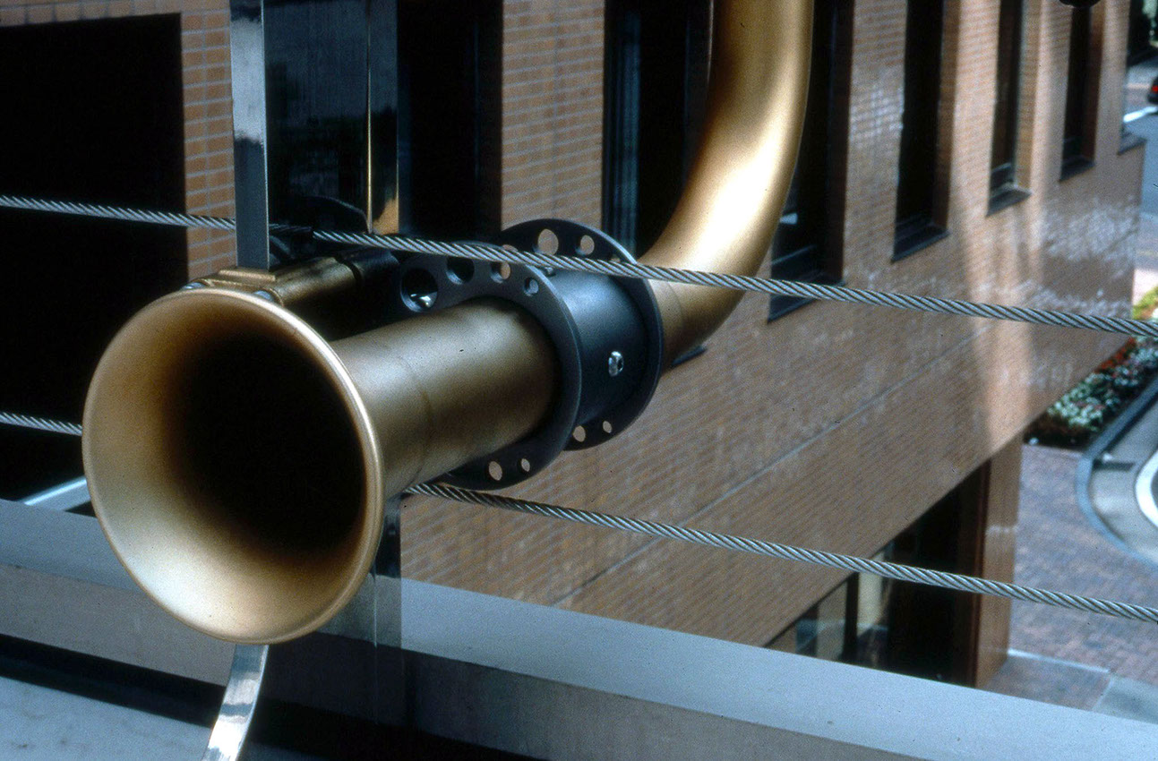 再開発により1994年に誕生した「ファーレ立川」は、新たな街のあり方を予感された街区、インターネットに代表される情報革命が起こりつつあることを感じた。私が、街区の開発プランをみたときの印象であるが、この場所にあえて肉声によるコミュニケーションの為の道具を風景の中に忍ばせておきたいと思った。