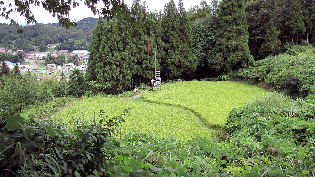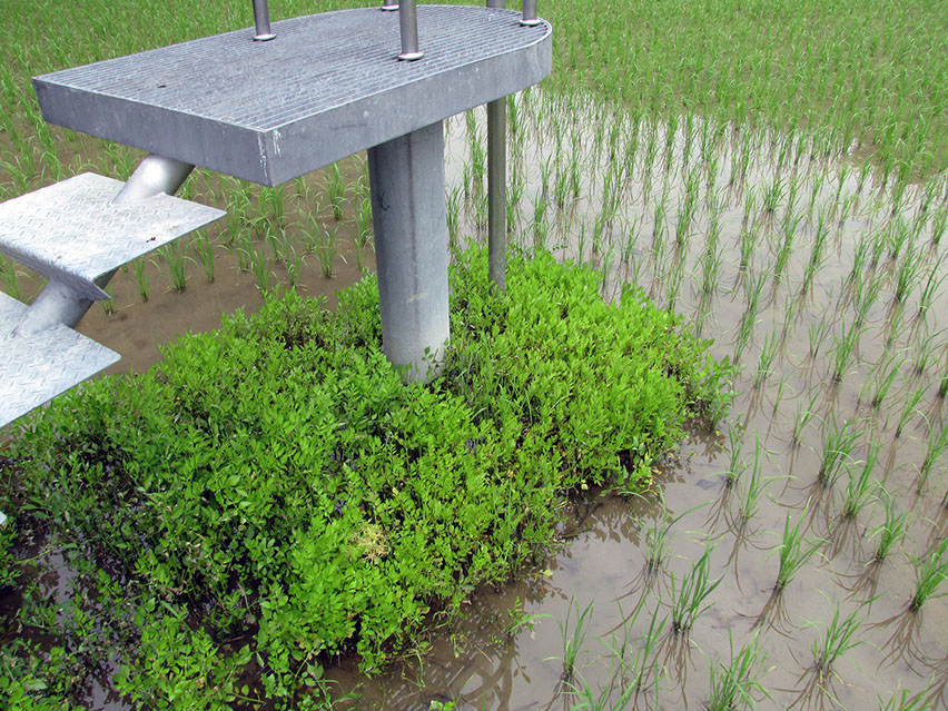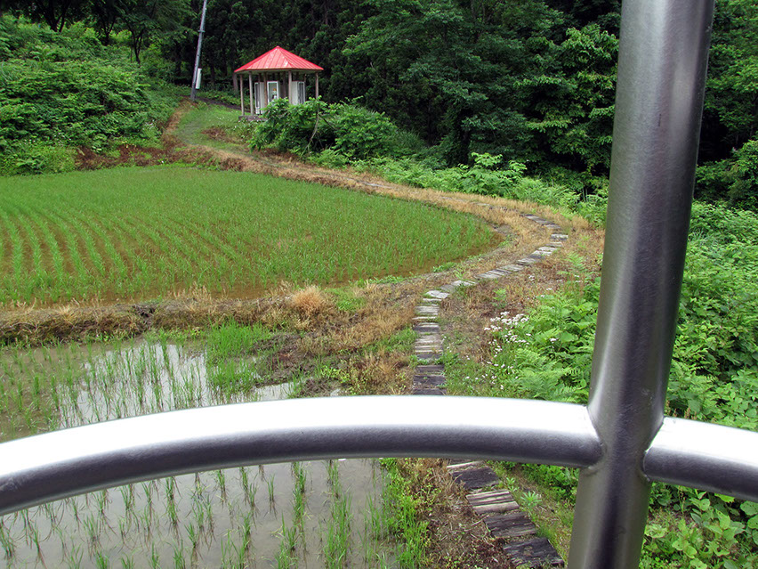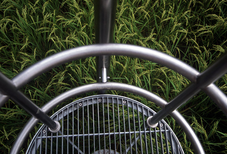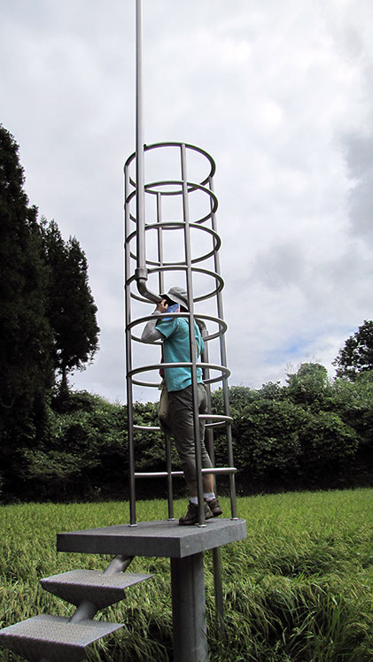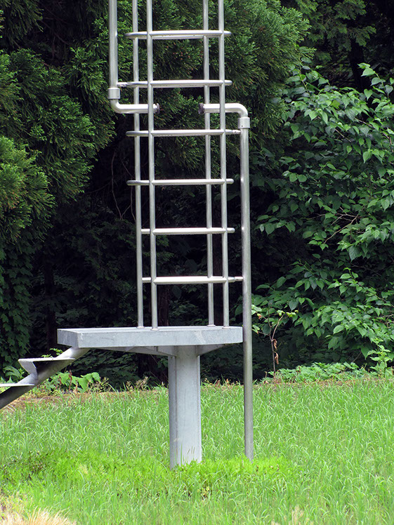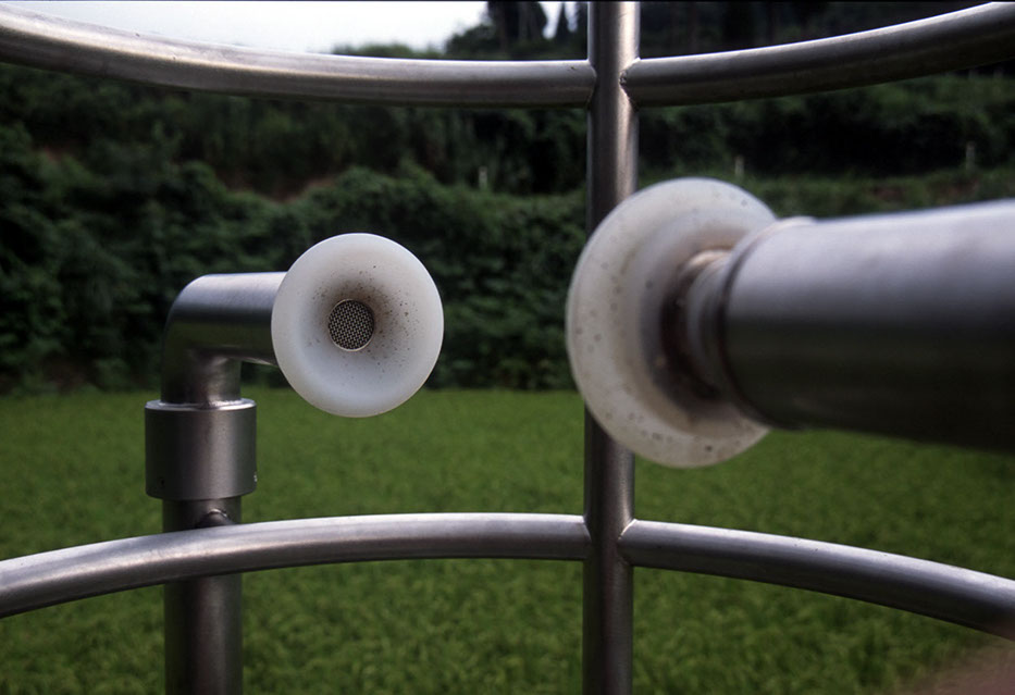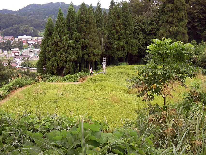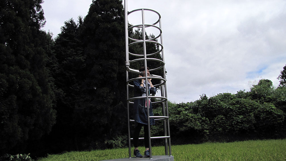 2000年の「第1回大地の芸術祭」において、松代町の棚田の風景の中に設置させていただいた。この作品は、私にとって文字どおり「観測所」である。この地との関わり始めに、妻有の棚田の中、自分のための物理的な一点としてこの「観測所」を置いてみた。今後もかかわりを持つこの地での観測によって、どの様な問いが生まれてくるのか、様々に思いをはせながらの第一歩であった。